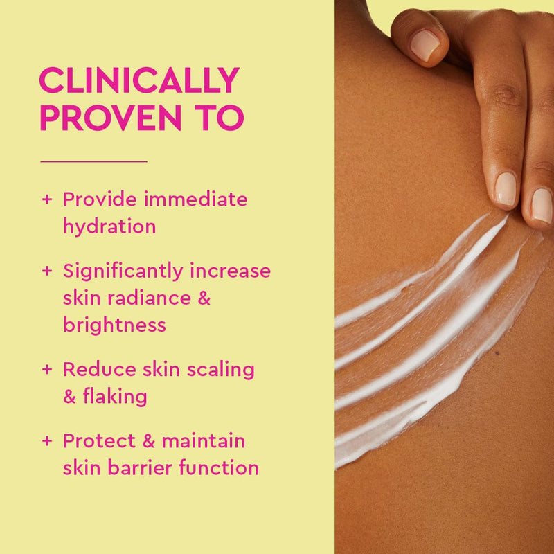 Denna lättviktig, mjuk kroppslotion mildt exfolierar för att förbättra huden generellt utseende utan att störa hudbarriärfunktionen. Formeln med ljusförstärkande egenskaper arbetar för att göra huden ljusare, ge omedelbar hydrering samtidigt som den stödjer hudbarriärfunktionen. Med vårt Tri-Ceramidkomplex och en blandning av hudvänliga Urea och Niacinamid kommer denna kliniskt bekräftade kroppslotion att synligt göra huden ljusare, jämnare ton och textur samtidigt som den effektivt hydrerar och återfyller fuktighetsnivåerna varje dag. Dermatologiskt testad och godkänd, alkoholfri, vegan och cruelty free.