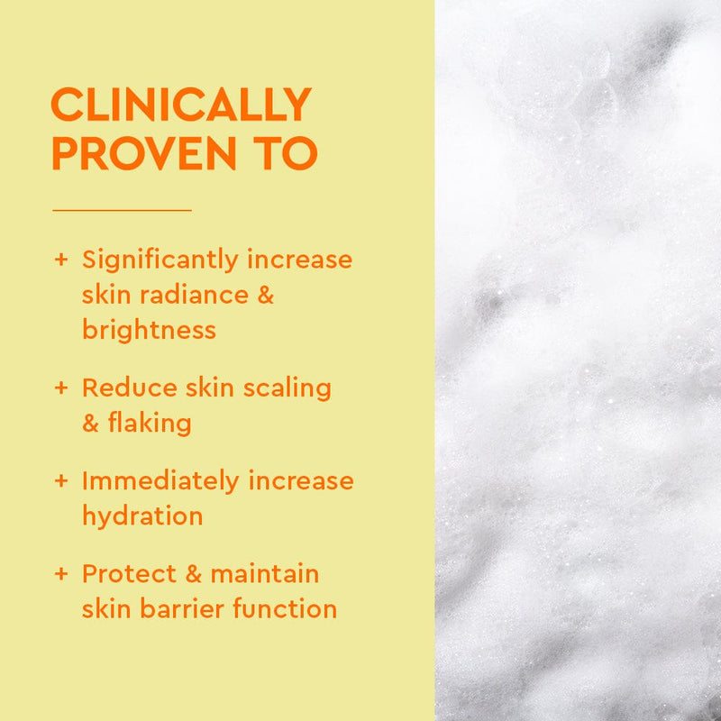 Denna strålansupphöjande, pH-balancerad kroppsvåd minskar matta utseende och ger tydliga ljusande fördelar. Den rika texturen förvandlas till en luxuösa skum som effektivt rengör utan att ta bort viktiga fuktighetsreserver från huden. Med vårt prebiotiskt komplett, Niacinamid och Azelainsyra ger den kliniskt bekräftade formeln en förbättrad yta av ojämn hudfärg och textur för ett glansande resultat samtidigt som den stöder mikrobiomen i duschen och hjälper till att bibehålla hudbarriärens hälsa redan vid första användningen. Dermatologiskt testad och godkänd, vegetarisk och cruelty free.